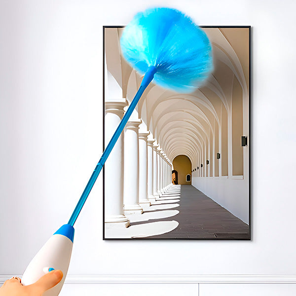 Mit dem elektrischen 360° Staubfeger wird Staubwischen so einfach wie nie zuvor. Dank seines drehbaren Kopfes und der weichen Mikrofasern erfasst er Staub mühelos selbst an schwer erreichbaren Stellen. Ob auf Regalen, Jalousien, Tastaturen oder Lampen – dieser Staubfeger sorgt für ein sauberes Zuhause ohne Aufwand!