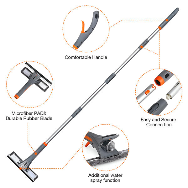 📏 Verstellbare Teleskopstange – Erreicht problemlos hohe Fenster und schwer zugängliche Stellen.
