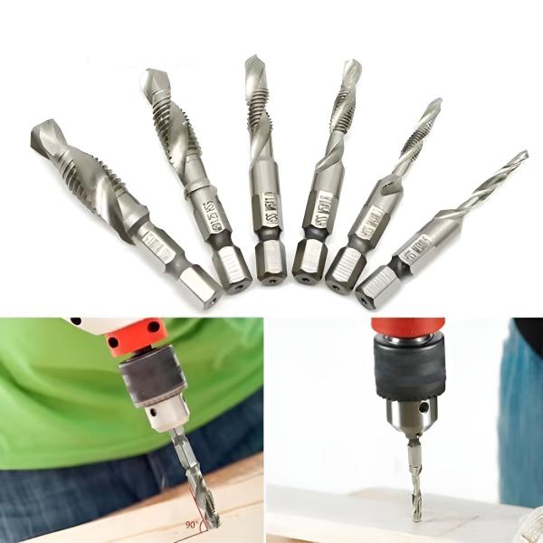Erleben Sie höchste Präzision und Effizienz mit dem Profi Gewindebohrer-Set Sechskantschaft (6 Stk.) Egal ob Heimwerker oder Profi – mit diesem Set schneiden Sie saubere und passgenaue Innengewinde in Metall, Kunststoff und Holz. Dank des Sechskantschafts kompatibel mit Akkuschraubern und Bohrmaschinen, für maximale Flexibilität!